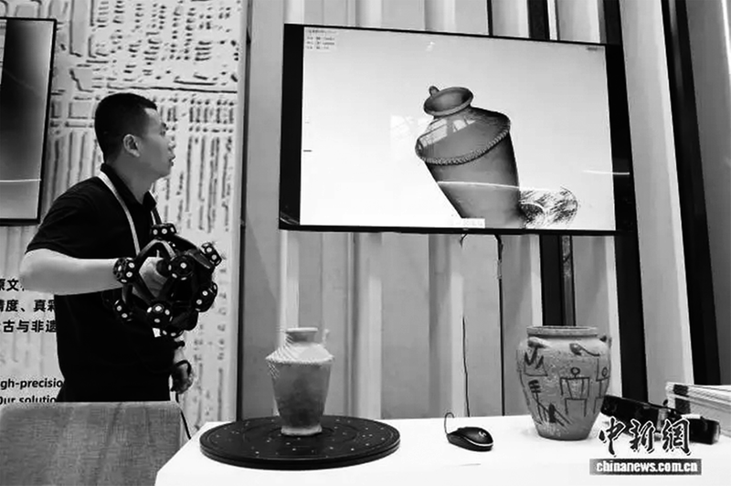 科研人员展示文物扫描技术。 中新社记者 李一璠/摄
