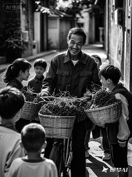 自行车停在了巷道口。我和小伙伴们便纷纷围拢上来,扒着竹筐,七嘴八舌,叽叽喳喳,稀罕地问东问西,眼馋地看着色泽红艳的五铃儿,鼻涕和口水不停地往下流。既想吃,又羞于没有钱买。