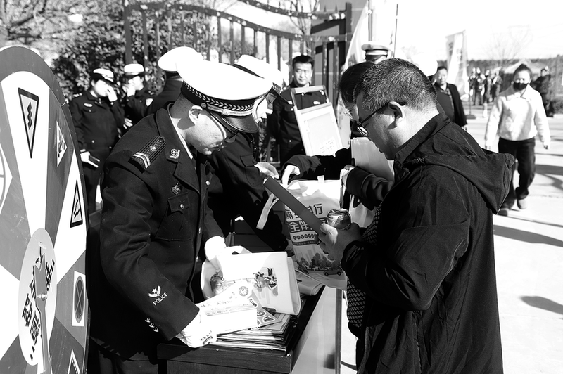 活动开始前,现场设置有奖问答区,通过“答题领礼品”的形式吸引群众提前参与,激发大家对交通安全知识的学习兴趣,同时,工作人员向群众发放交通安全宣传资料。