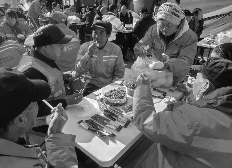 上午九点,工作人员提前做好爱心午餐准备工作,白菜洗净剥好,豆腐切成小方块,粉条整齐摆放,炉灶前精心炒制,香气扑鼻。不一会儿,200余份热气腾腾的汤面就制作完成。环卫工人们接过午餐,疲惫的脸上绽放出质朴的笑容,温暖与感激之情溢于言表。
