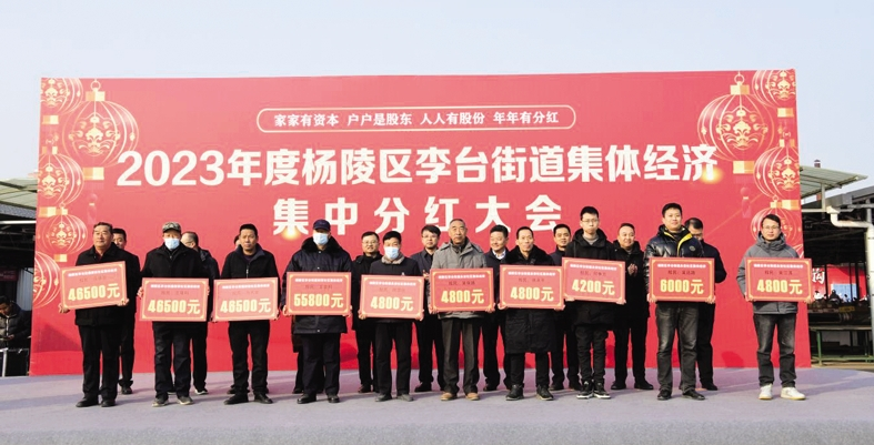 阳光讯(记者 赵小康 通讯员 焦盼 文/图)1月30日,2023年度杨陵区李台街道集体经济集中分红大会在陈小寨市场举行。杨陵区委副书记、李台街道党工委书记李永东出席并致辞。