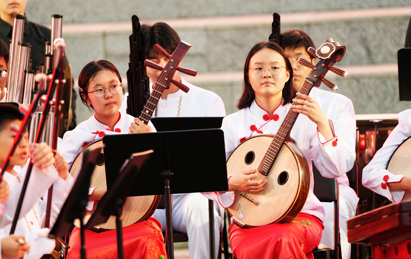 7月12日晚,西安市铁一中学纪念中国人民抗日战争暨世界反法西斯战争胜利80周年音乐会在洛南县音乐小镇举行。西安市铁一中学的学生们分别表演了交响乐《激情燃烧的岁月》《我的祖国》,合唱节目《歌唱二小放牛郎》《毕业歌》等,融合了故事讲述、视听赏析、舞蹈、情景剧等多元艺术形式,为观众献上了一场兼具历史厚重感与艺术感染力的视听盛宴。