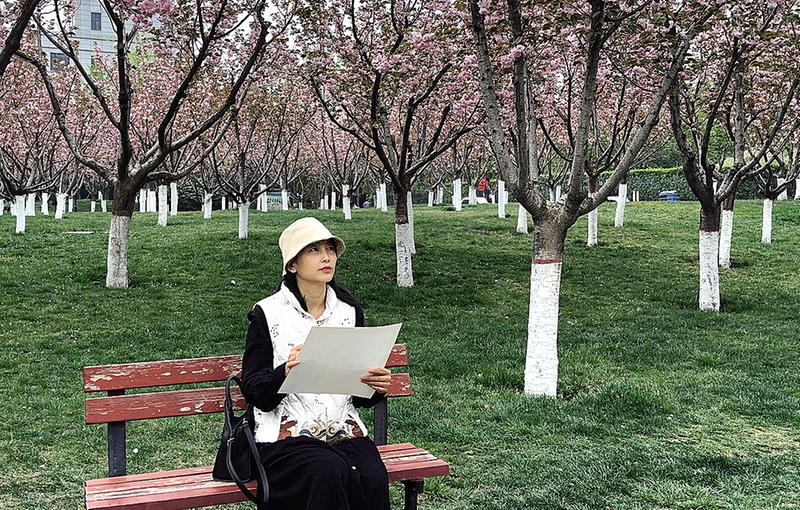 在一个柳絮飞满天、桃花红杏花白的日子里,陕西省妇女书画协会举行了一年一度的书画大展。这一年的书画大展同往年一样群英荟萃,令人赏心悦目。睡莲、瓶梅这两幅工笔画,以及相邻展出的几幅散淡稀疏、充满野趣的花卉作品引起了我的注意。前者工笔细腻,给人以优雅的气质;后者写意疏朗,透露出自然天成的韵味。万花丛中,高山林立、流水迂回,朱雅萍老师的一幅写意山水画,令人眼前一亮。原来女性也能画出如此大气磅礴的山水画,从此我就记住了她的名字。作为一名刊物主编,我常常渴望能有别开生面的好作品充实版面,所以决定会后一定要去拜访她。当我叩开朱雅萍老师工作室的大门时,见到的却是她的爱人杨朝阳先生。更没想到杨先生解释说,朱老师近期到山里写生去了,一个月后才回来。