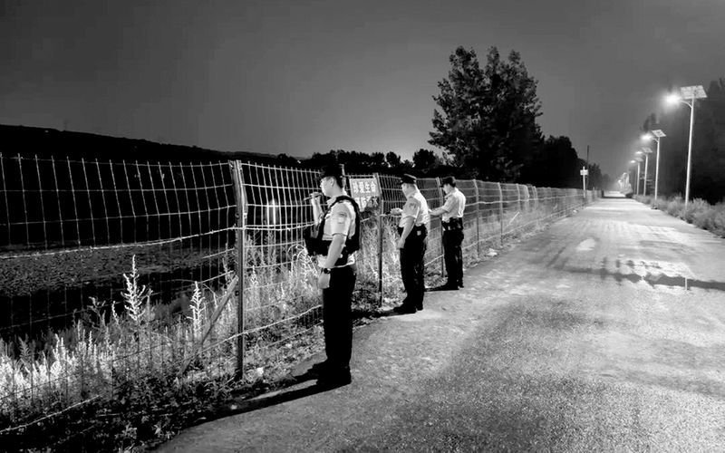 他们沿堤岸排查隐患,对垂钓、纳凉的群众耐心劝离危险区域;检查排水口是否畅通,清理堵塞行洪的杂物;测试防汛物资储备,反复确认每个细节。暮色渐浓,河面泛起细碎的光斑,脚步声踏碎了河畔的宁静,却守护着这片土地的安宁。对这里的民警而言,这样的节奏早已成为生活的一部分——无论是烈日下的奔走,还是深夜里的守候,他们都像一棵棵挺拔的白杨树,扎根在这片土地上,用汗水浇灌平安之花,用热血书写忠诚的篇章。