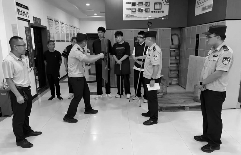 强化实训,提升应急处置能力。在洪庆派出所组织开展的全域安全巡查中,民警针对部分场所保安应急处置能力不足等问题,现场开展了最小应急作战单元专项培训,通过“理论讲解+实操演示+模拟对抗”的形式,详细教授了盾牌、钢叉等装备的使用技巧,以及突发警情下人员疏散、初期控制等实战要点,有效提升了保安队伍的应急处突能力。同时,民警还在酒店等重点场所,严格检查了实名登记制度的落实情况,强调“一人一证、人证一致”,从源头上防范违法犯罪。