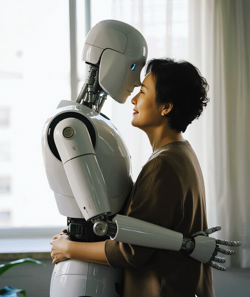 血色的夕阳落进病房上方的窗户里,洒在母亲瘦削的脸上。母亲脸上少见的红晕,在慈祥地雀跃着。“哥哥”轻轻擦拭着母亲的眼泪,说:“妈妈,我一直都在。”“哥哥”说,他虽然去了一个遥远的地方,但在那里,他以自己本该的样子一起长大。他竟能将母亲的很多事情娓娓道来,每一个细节都精准无误。我十分满意“哥哥”的表现。作为AI“情感机器人”的创始人,我的杰作终究给了母亲最后的慰藉,而且是那样的逼真和生动。