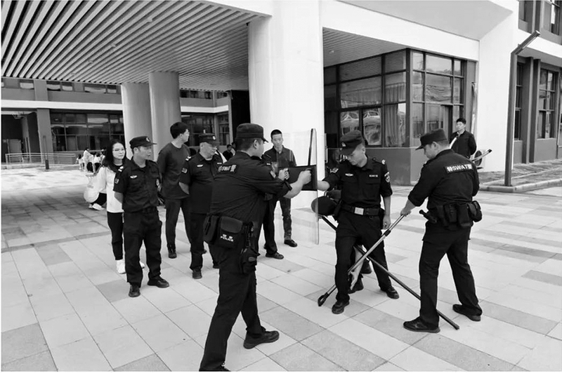 9月4日,西安市公安局灞桥分局特警大队联合红旗派出所走进高铁东城小学,开展了“最小作战单元”实战送教活动。针对校园内常见的突发场景,组织安保人员开展了模拟训练,通过“手把手”教学,有效提升了安保人员的器械使用技能、应急反应速度和团队协作能力。