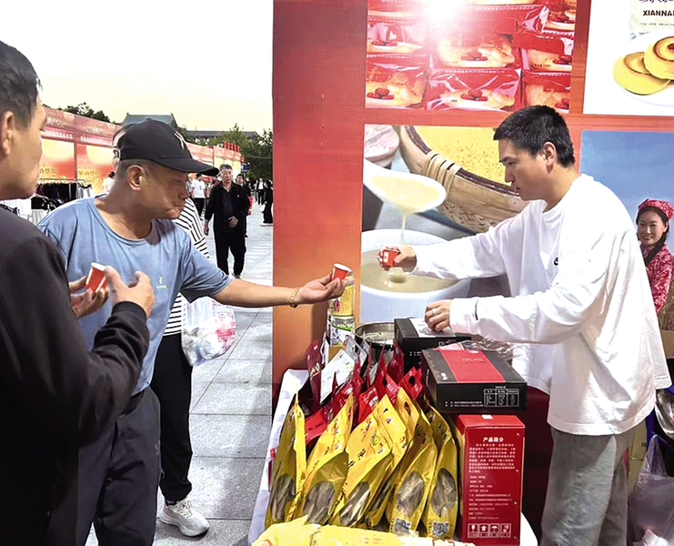 9月4日至10日,“榆林美食生活消费周”活动在世纪广场同步举行。活动现场设置了文化产品展销、非遗美食体验、农特产品推介、旅游景区推广、轻纺服饰展销、汽车销售等多个专区。清涧紫晶枣、米脂小米、横山羊肉等非遗美食让游客大饱口福;榆林剪纸、“黄河精灵”IP等手工艺品精美绝伦;来自十二个县、市、区的特色农产品琳琅满目。