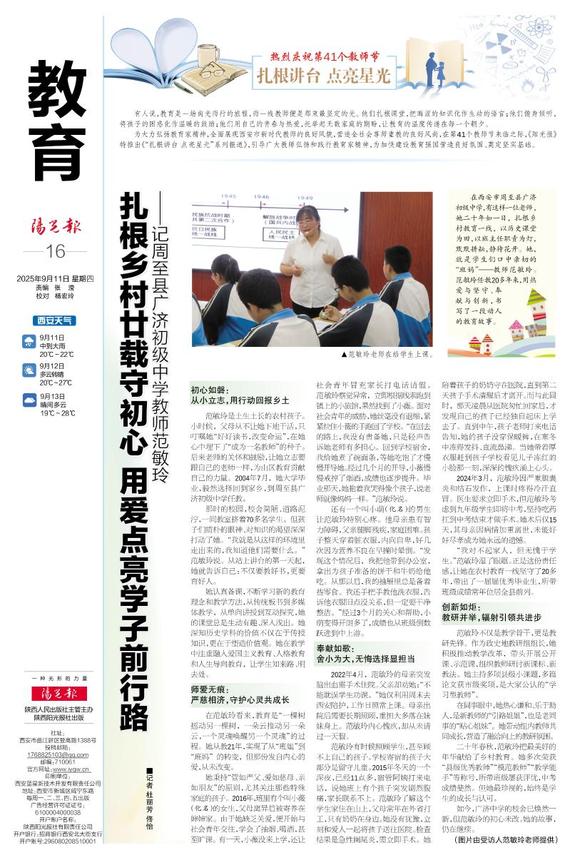 扎根乡村廿载守初心 用爱点亮学子前行路