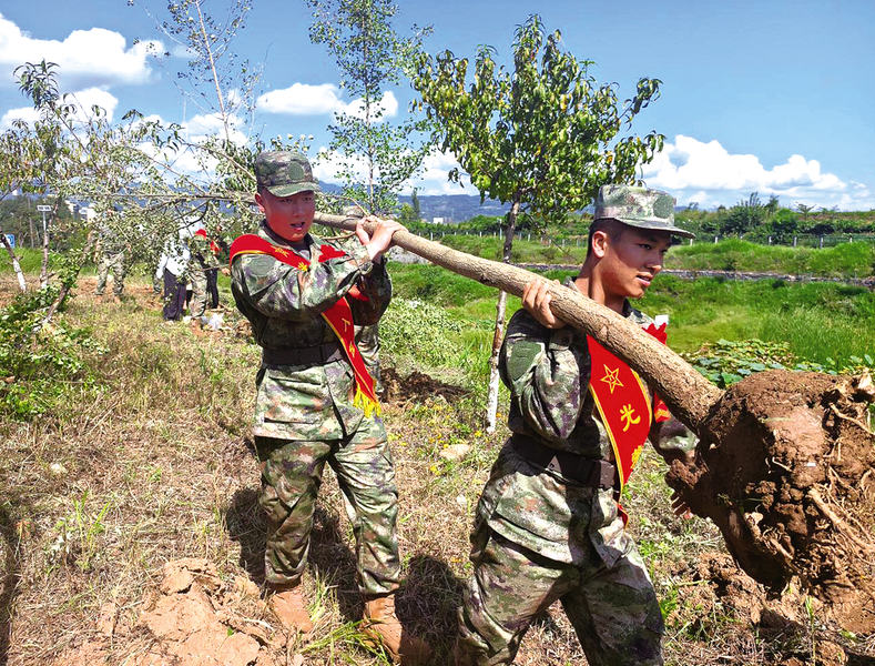 9月15日,汉阴县城关镇组织2025年秋季入伍新兵来到中堰村民兵产业园,开展“种下从军树·立下报国志”主题植树活动。