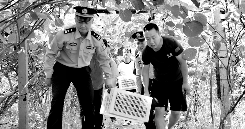 阳光讯(记者 梁萌 文/图)时值金秋,西安市灞桥区歇驾新村千亩猕猴桃园迎来大丰收。9月15日上午,西安市公安局灞桥分局灞桥派出所社区民警张倍源与同事利用工作间隙开展反诈宣传活动并帮助农户采摘猕猴桃。他们深入果园,与村民一同采摘、搬运,警服上沾满枝叶、额角上带汗也顾不上停歇,在阳光洒落的果园里共同绘出一幅警民协力的秋收图景。