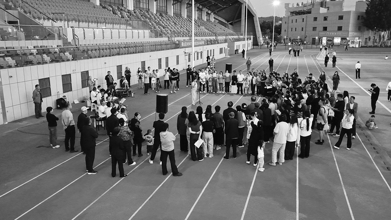 广场上,男女老少,专业的、业余的,他们跟着乐器的节拍,手舞足蹈,放声歌唱。活动现场,群众在指挥的引导下,《没有共产党就没有新中国》《南泥湾》《打酸枣》等12首经典歌曲轮番登场。