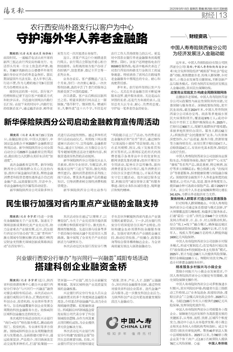中国人寿寿险陕西省分公司为经济发展注入金融动能