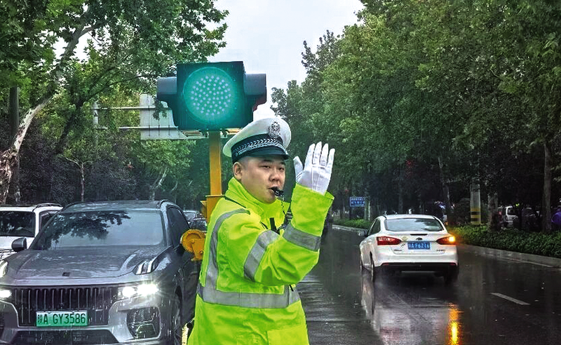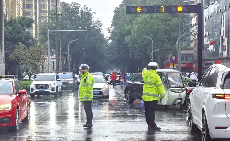 图3图4:风雨中,西安交警坚守岗位疏导交通,保障城市平稳运行。