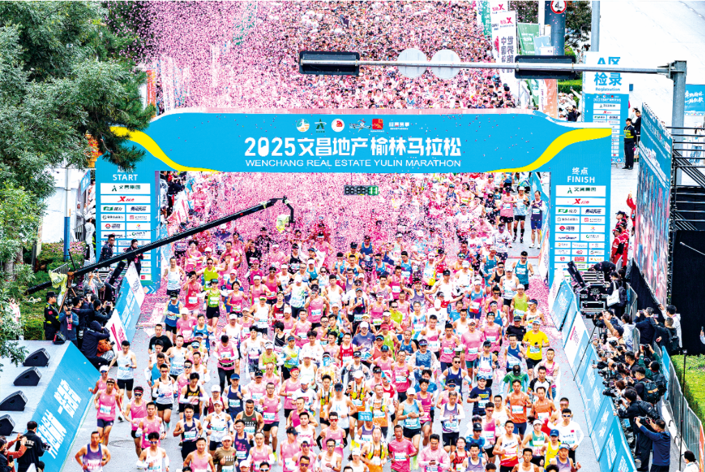 9月21日,榆林马拉松在喜洋洋时代广场鸣枪开跑。