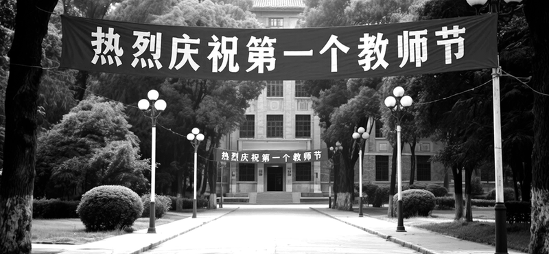 节庆前几日,校园主干道两侧已经挂上了红色横幅。“热烈庆祝第一个教师节”“尊师重教,振兴中华”等墨迹未干的标语在秋风中轻轻飘动,像是要把喜庆气氛传遍校园的每个角落。