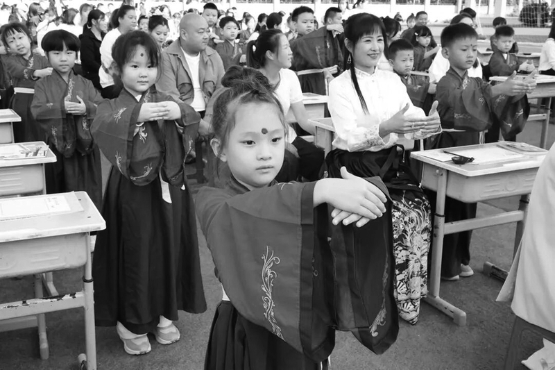 稚嫩的童声,整齐而真挚,回荡在校园的每一个角落。孩子们诵读《弟子规》,声音里有敬畏,有好奇,也有成长的力量。父母站在一旁静静聆听,眼神温柔得像一汪水。
