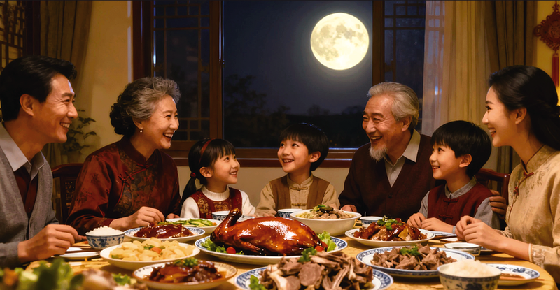 中秋月圆,红旗飘扬。当“双节”的喜悦在空气中交融时,我家的团圆饭桌上,北京的烤鸭、陕北的羊肉、香港的月饼……竟铺开了一幅“中国地图”。镶嵌茉莉花边的白瓷盘里,盛着的不仅是美味,还有跨越时空的家国味道。