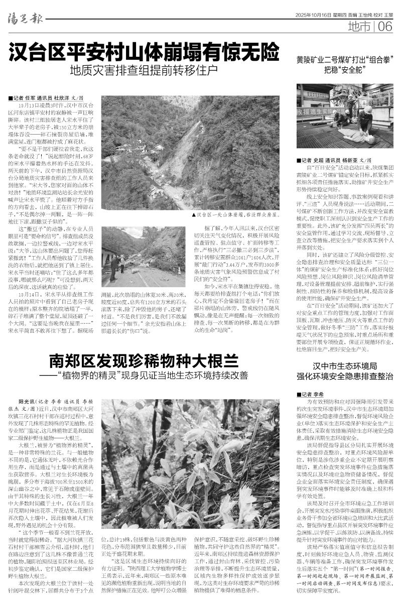 汉台区平安村山体崩塌有惊无险