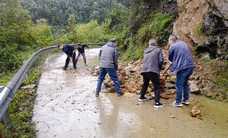 各村充分发挥党支部战斗堡垒作用,在存在风险隐患的交通道路、老旧房屋等周围设立警戒线,迅速组织机械设备对辖区交通干道的落石、淤泥等进行清理,确保群众出行无忧。全镇累计清理道路塌方22处3200立方米,设立警示标志标识18处;同时,广泛动员农户对房前屋后的淤泥、积水进行清理,最大程度降低强降雨对生产生活造成的不利影响,尽快恢复正常生产生活秩序。