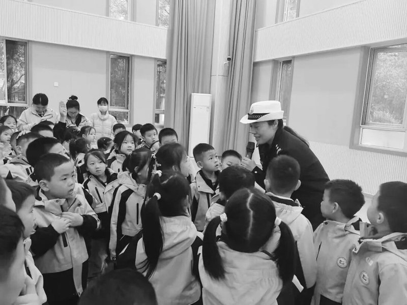 最让孩子们兴奋的是情景互动环节,孩子们在民警的带领下,现场模拟情景体验,充当起“小交警”和“行人”的角色,在“剧情”实践中学会了红灯停、绿灯行,过马路左右看,安全乘车、“一盔一带”等常用安全注意事项,让安全出行意识在体验式教学中落地生根。
