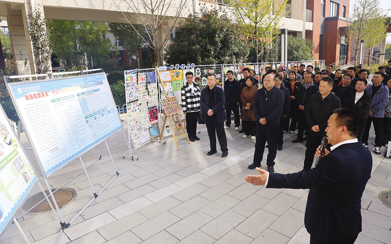 在泾阳县泾惠学校、泾阳县城区第七幼儿园,与会人员在讲解员的带领下,认真听取两个单位在落实“十统一、六到位、四遵守”管理模式方面的情况介绍,观看“十统一、六到位、四遵守”管理模式展板;实地观摩学校原料采购、进货查验、原料贮存、食品留样、清洗消毒、人员卫生、废弃物管理、分餐条件等标准化体系建设情况;查阅学校日管控、周排查、月调度等制度落实情况资料。